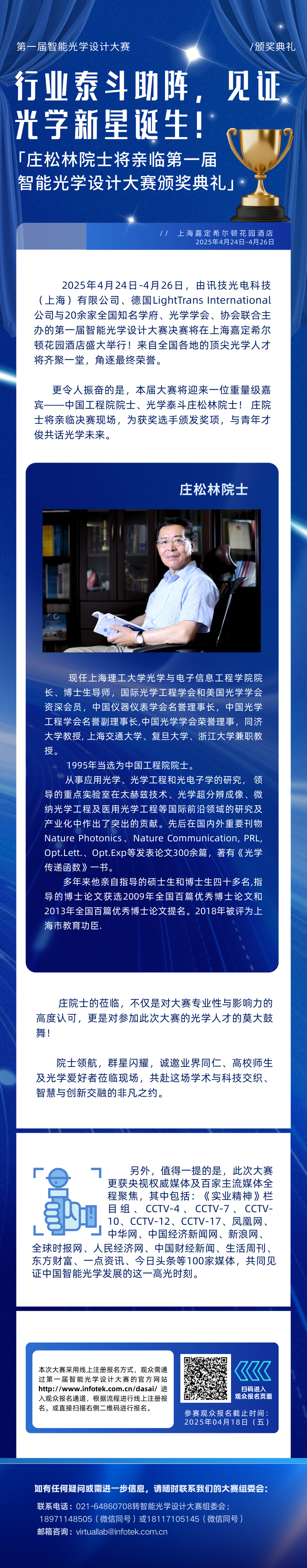莊松林院士將親臨第一屆智能光學設計大賽頒獎典禮