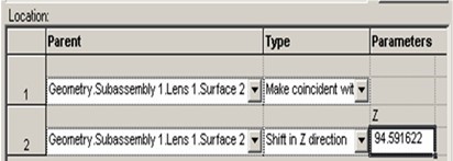 光線聚焦的幾何面是一個簡單的表面,它的位置規(guī)范與透鏡的第二個面是一致的,并且在Z軸方向移動94.591622 mm。