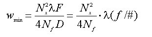 為了充分采樣透鏡的空間頻率直到截止頻率,分析面的最小半寬需滿足以下要求: