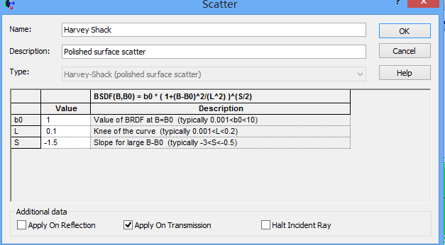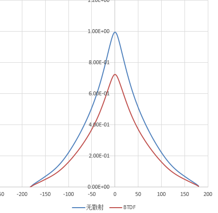 增加第一表面的BTDF函數(shù),TIS=0.27,表面粗糙度為:90埃