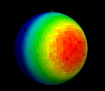 既然數(shù)據(jù)已經(jīng)從極坐標(biāo)圖中導(dǎo)出,那就有必要驗(yàn)證坐標(biāo)系統(tǒng)的設(shè)置是否正確。在本例中,極軸沿著Z方向,方位角軸沿著X方向。當(dāng)只有1個(gè)方位角數(shù)據(jù)輸入進(jìn)來時(shí),F(xiàn)RED將假定分布是旋轉(zhuǎn)對(duì)稱的。當(dāng)輸入多個(gè)方位角數(shù)據(jù)是,F(xiàn)RED會(huì)將這些數(shù)據(jù)點(diǎn)進(jìn)行線性插值。