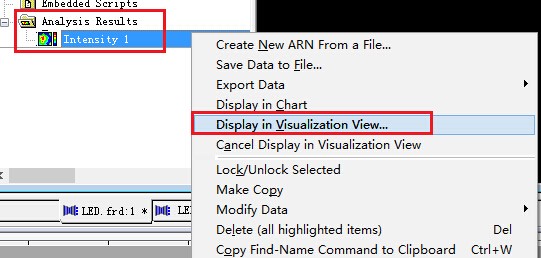 通過添加一個(gè)方向分析實(shí)體(DAE)到系統(tǒng)模型中,我們就可以驗(yàn)證強(qiáng)度分布曲線。右鍵點(diǎn)擊分析表面文件夾,從列表菜單里選擇“新建方向分析實(shí)體”。添加好DAE后,將它分配到光源模型中,通過拖放對(duì)象樹即可驗(yàn)證。