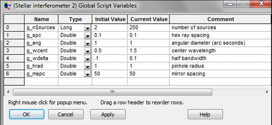 圖3.邁克爾遜恒星干涉儀的全局腳本變量