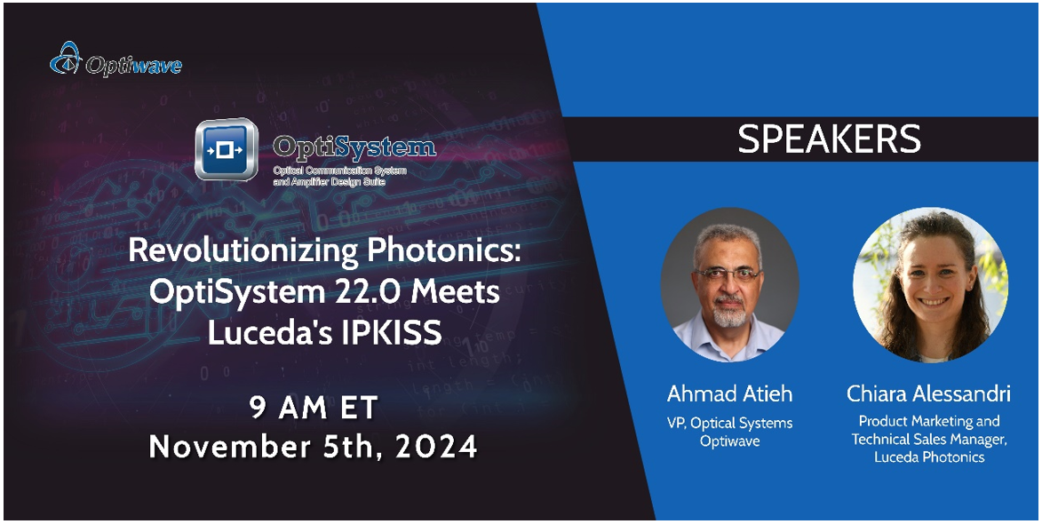 Optiwave和Luceda Photonics公司將參加一個(gè)獨(dú)家的聯(lián)合網(wǎng)絡(luò)研討會(huì),該研討會(huì)將展示OptiSystem 22.0(即將發(fā)布)和Luceda尖端IPKISS的強(qiáng)大集成,以在系統(tǒng)環(huán)境中表征光子集成電路。