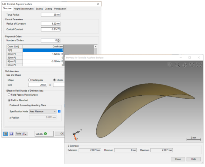 我們實(shí)現(xiàn)了以下新的曲面類(lèi)型:Anamorphic非球面,Q-Type非球面和Toroidal非球面。也可從Zemax導(dǎo)入相應(yīng)的面型。