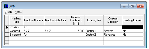 圖1-2.輸入?yún)?shù)的堆棧文件。注意BK7介質(zhì)的介質(zhì)類(lèi)型是楔形。