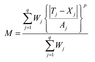 其中M是品質因子,T是目標值,X是實際值,A是公差,W是權重,p是引起誤差的冪數(shù)。