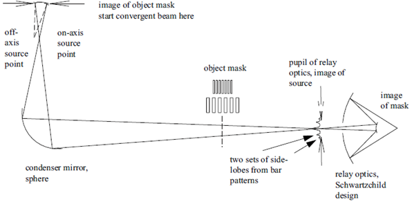 部分相干光的建模過(guò)程為:將光源看作無(wú)數(shù)的點(diǎn)光源,每個(gè)點(diǎn)光源通過(guò)系統(tǒng)成像,并在成像面上進(jìn)行非相干疊加。因?yàn)辄c(diǎn)光源發(fā)出的光線要通過(guò)整個(gè)系統(tǒng),所以點(diǎn)光源的數(shù)目一定要盡量小。一個(gè)完整的相干系統(tǒng)只需要一個(gè)點(diǎn)光源,而部分相干系統(tǒng)可能需要10個(gè),而非相干系統(tǒng)差不多要求50個(gè)。