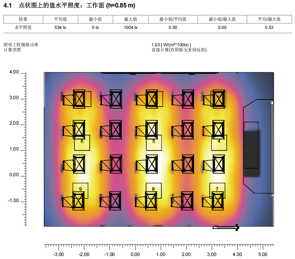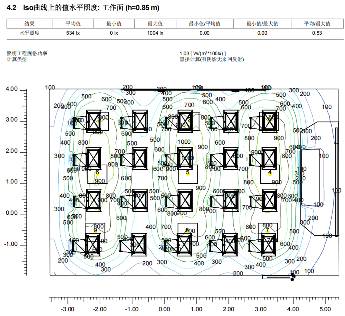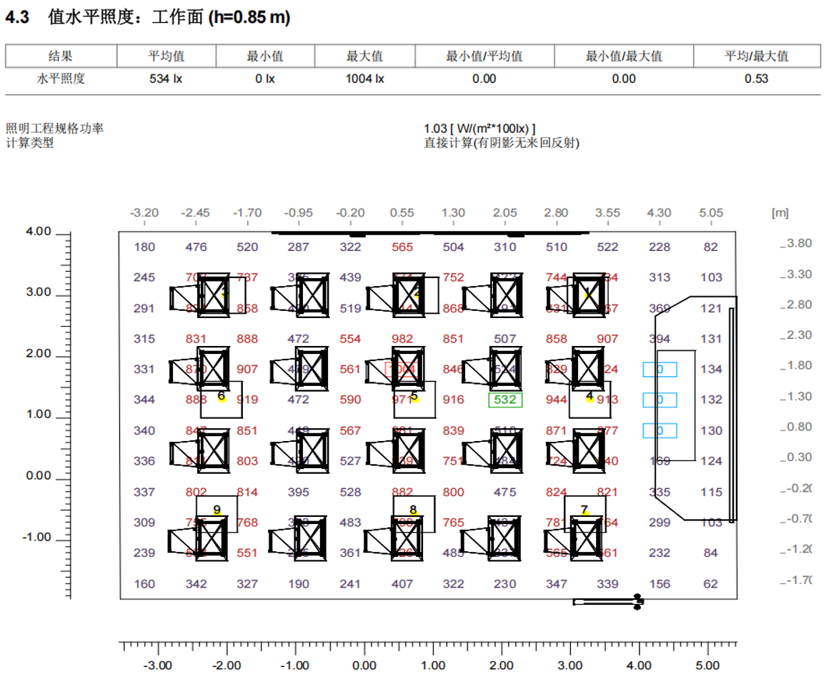 數(shù)值圖顯示區(qū)域照度為530-700lx。