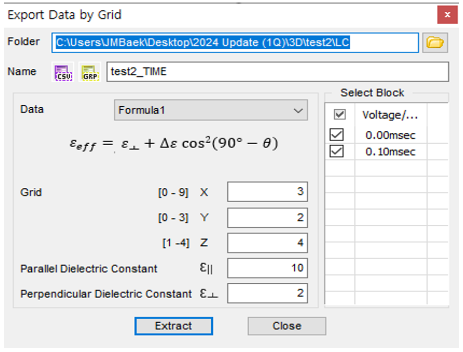 e) 提取后,保存各電壓的平均介電常數(shù)圖和csv文件。