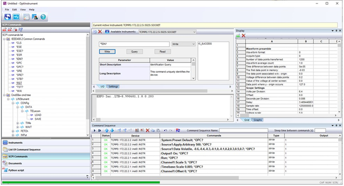 圖3.OptiInstrument GUI的Python腳本窗格中顯示的SCPI命令序列生成的Python腳本