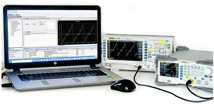 圖2.使用OptiInstrument軟件通信和控制一個(gè)函數(shù)發(fā)生器和一個(gè)示波器