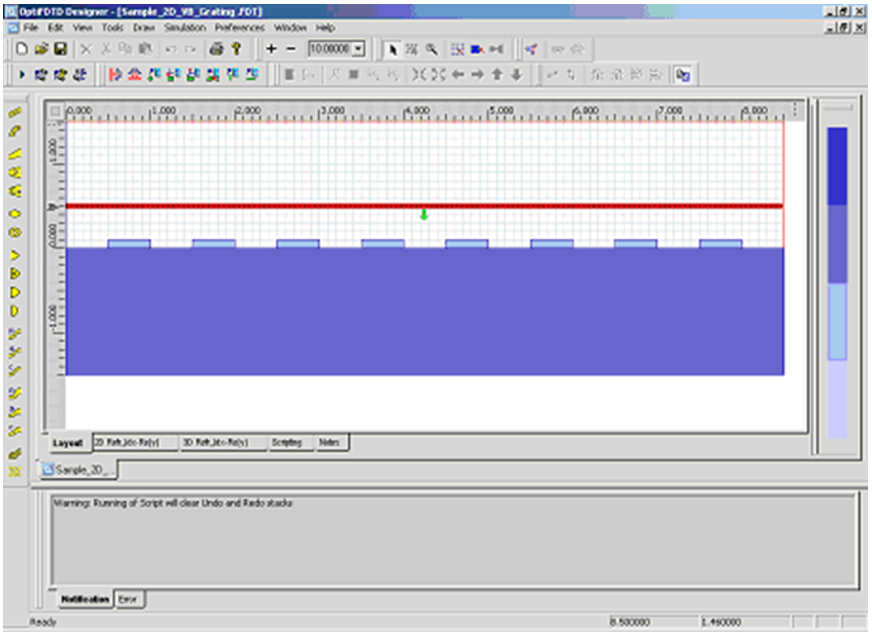 光柵布局在大多數(shù)情況下是周期性結(jié)構(gòu)。OptiFDTD中有兩種實(shí)現(xiàn)周期性布局的方法:PBG編輯器和VB腳本。本課將重點(diǎn)介紹以下功能: