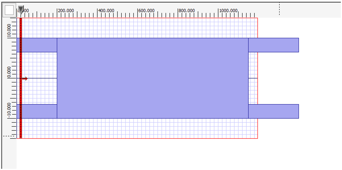 在OptiBPM中使用二氧化硅材料設(shè)計了MMI耦合器。纖芯和包層的折射率分別為1.47和1.4456。對于這些折射率,波導(dǎo)寬度為3.5 μm導(dǎo)致單模工作。MMI耦合器的布局如下圖所示: