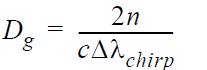 色散系數(shù)Dg [ps/nm.km]。對(duì)于線性啁啾光纖布拉格光柵,由以下簡(jiǎn)單表達(dá)式給出: