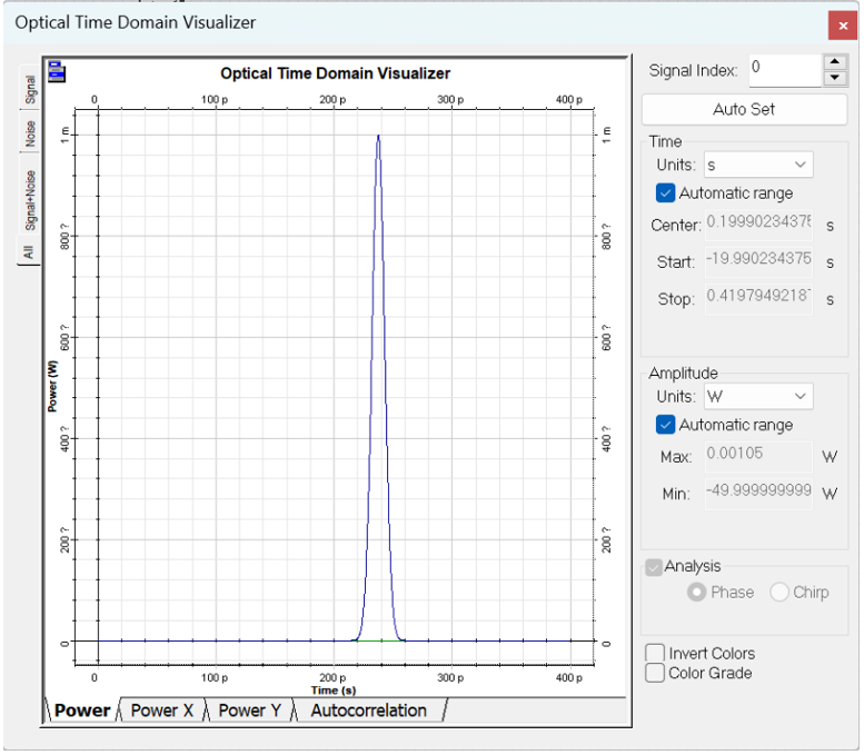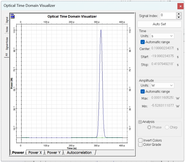 由于色散,脈沖寬度增加到約50 ps,在SMF中傳播10 km后的累積色散為160 ps/nm。