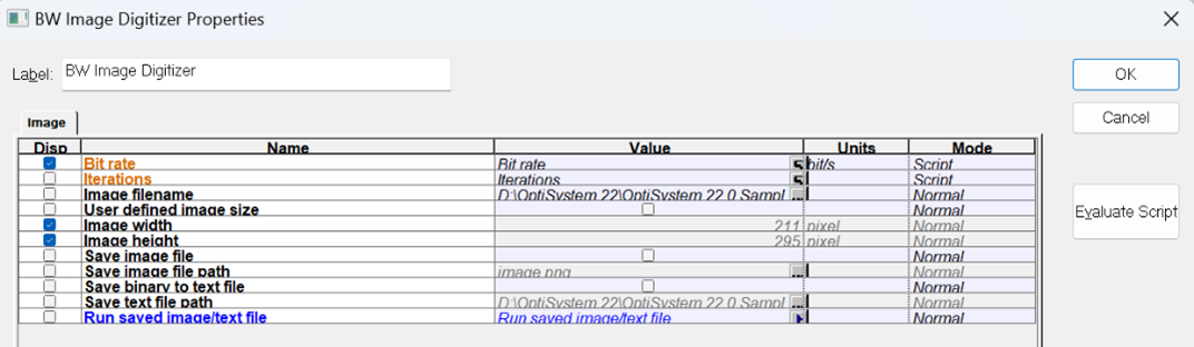 對于黑白圖像數(shù)字化組件和圖像重構(gòu)組件,設(shè)置如圖2所示: