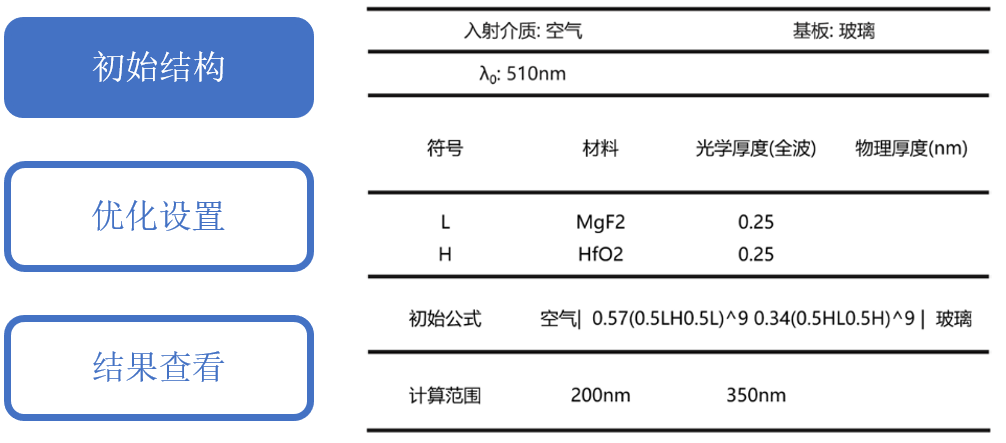 通過優(yōu)化,最終獲得了滿足設(shè)計要求的膜層結(jié)構(gòu)。