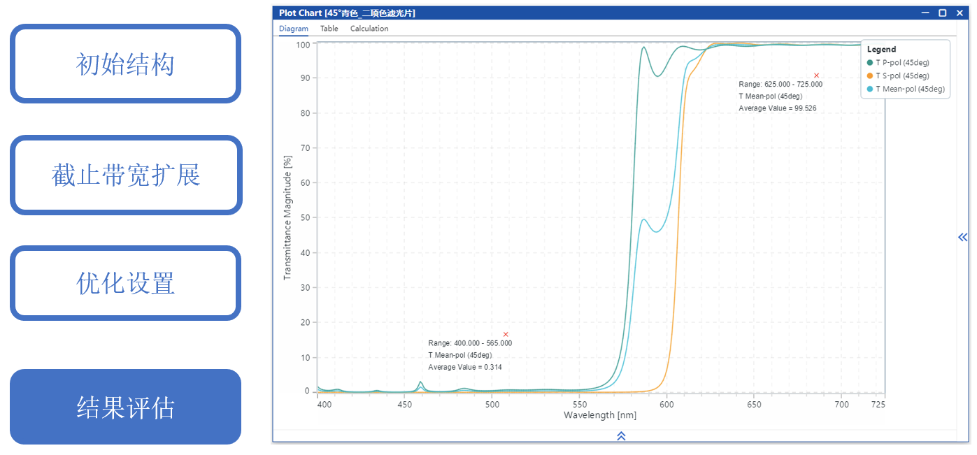 VirtualLab Unity應(yīng)用:45°青色二向色濾光膜