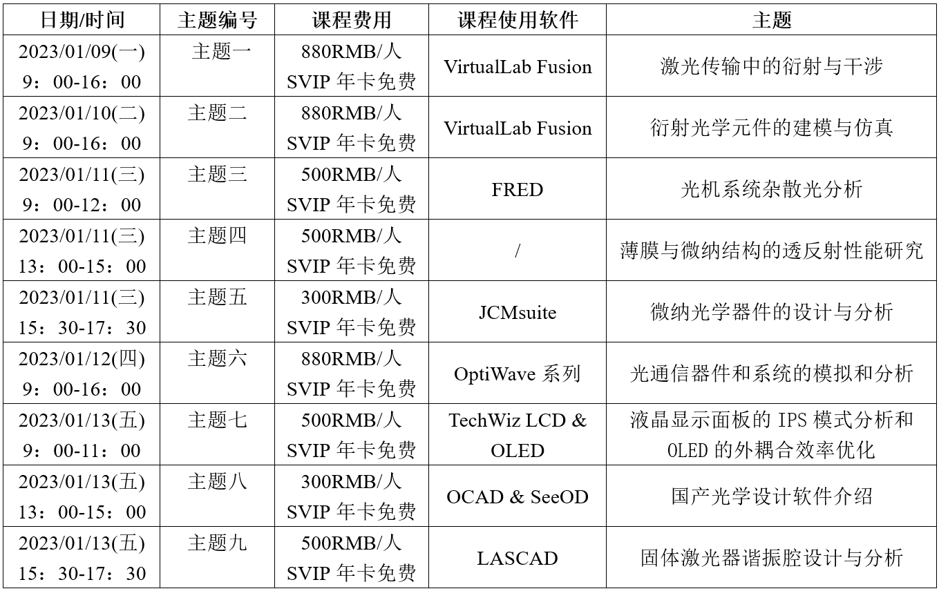 歡迎大家參加熱門光學軟件之初體驗網絡課程,1月13日上午,光液晶顯示面板的IPS模式分析和OLED的外耦合效率優(yōu)化(基于TechWiz軟件),1月13日下午國產軟件介紹,1月13日下午固體激光器諧振腔設計與分析(基于LASCAD軟件)
