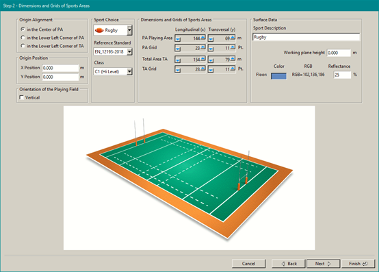 通過選擇運動類型、要應用的標準以及表面的顏色來定義比賽區(qū)域