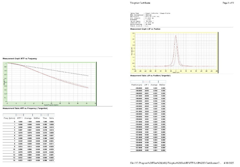 MTF測(cè)量精度:±0.02MTF(軸上)、±0.03MTF(軸外);