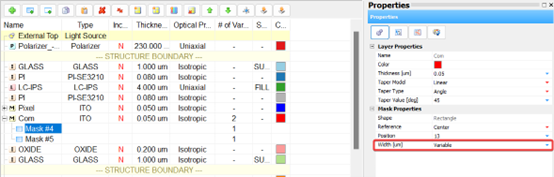 我們可以在TechWiz LCD 2D軟件中調(diào)整電極的寬度,錐度,厚度和位置。