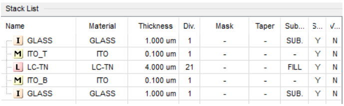 2.1由于此案例結(jié)構(gòu)是上下電極的簡單結(jié)構(gòu),在TechWiz Layout中僅設(shè)置模擬區(qū)域即可,在SIM中搭建堆棧結(jié)構(gòu)