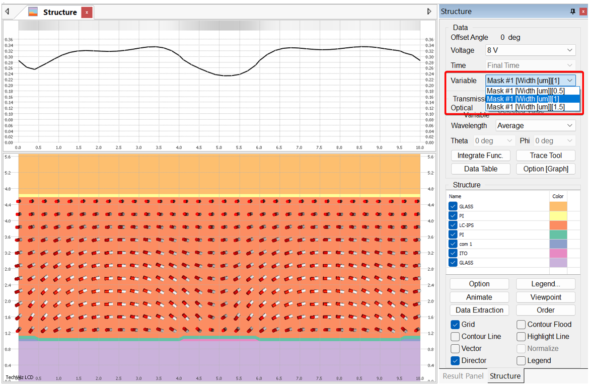 3.1 結(jié)構(gòu)與透過(guò)率?梢栽谟覀(cè)直接選擇不同的變量,來(lái)查看不同變量下的狀態(tài),如下圖