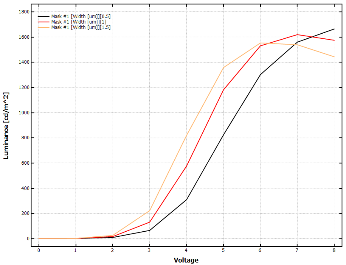3.2 不同電極寬度下的圖表