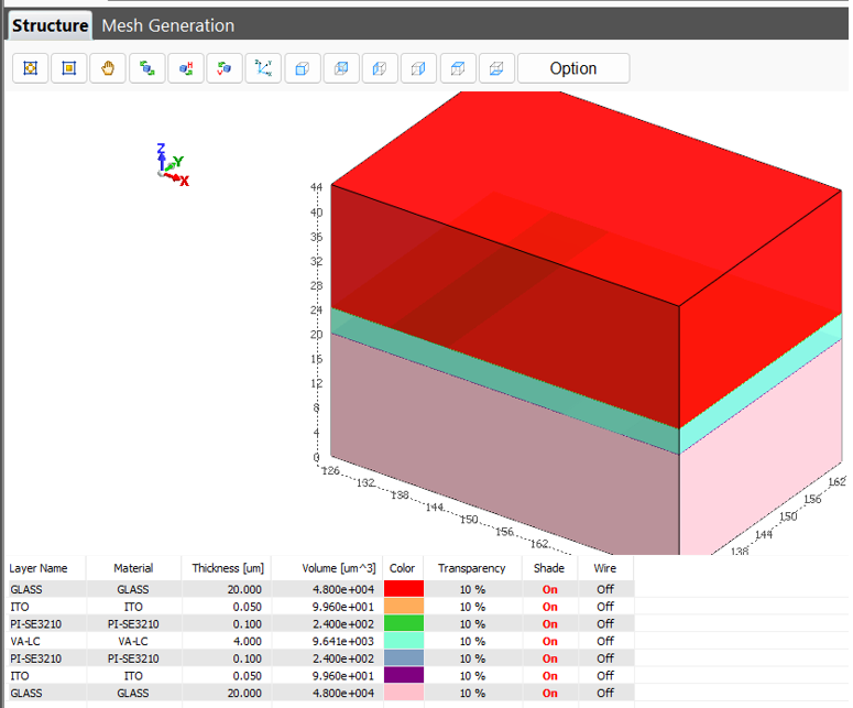 結(jié)構(gòu)創(chuàng)建完成后在TechWiz LCD 3D中加載并進(jìn)行相關(guān)參數(shù)設(shè)置