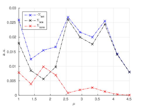 在JCMsuite中,利用光學手性的形式和內(nèi)置的手性參量可以計算光散射體的手性響應(yīng)。結(jié)果表明,時間諧波光學手性密度服從局部連續(xù)性方程[1]。這使得手性行為的分析類似于研究電磁能量的標準消光實驗。