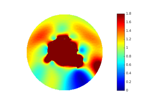 它的直徑是一個波長的量級,它的介電常數(shù)固定為ε=4.5。在下面,我們將改變散射體的磁導率μ,并觀察預(yù)測的對偶對稱性[3]對于恒定比率ε/μ的散射體及其環(huán)境。周圍的材料是ε=μ=1的空氣。