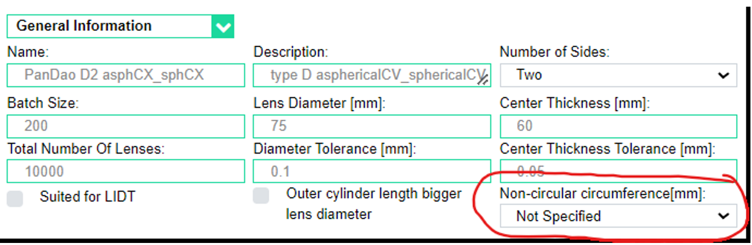 根據(jù)相關(guān)標(biāo)準(zhǔn),PanDao默認(rèn)讀取具有透鏡直徑的圓形光學(xué)元件(在通用輸入部分進(jìn)行輸入)。對(duì)于其他非圓形外徑形狀,如矩形,請(qǐng)使用PanDao軟件的“非圓形圓周”功能。
