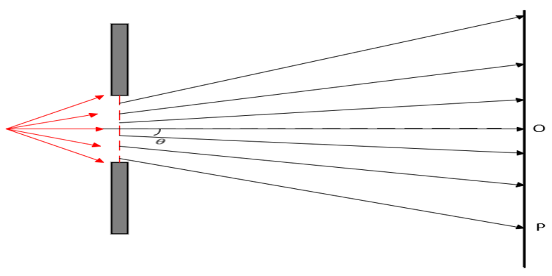 衍射物與光源及接收屏均在有限遠(yuǎn)處的衍射稱為菲涅爾衍射,菲涅爾衍射的光源為點(diǎn)光源,實(shí)際實(shí)驗(yàn)觀測(cè)時(shí)不需要使用透鏡,僅需在有限遠(yuǎn)處放置光屏或觀測(cè)相機(jī)即可。單縫菲涅爾衍射的示意圖下圖所示