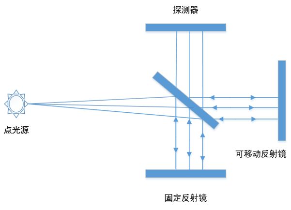 邁克爾遜干涉儀是光學(xué)干涉儀中最常見的一種,其原理是一束入射光分為兩束后各自被對(duì)應(yīng)的平面鏡反射回來,這兩束光從而能夠發(fā)生干涉。干涉中兩束光的不同光程可以通過調(diào)節(jié)干涉臂長度來實(shí)現(xiàn),從而能夠形成不同的干涉圖樣。