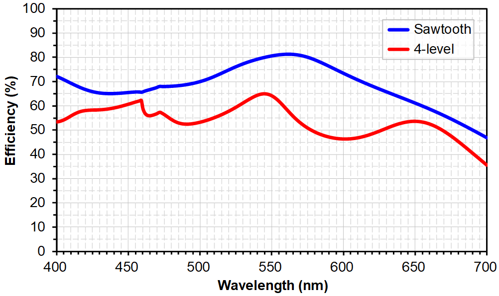 圖3. 四臺階光柵的衍射效率與波長的關系