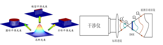 圖1. (a)二元光學(xué)元件用于光束整形     (b)二元光學(xué)元件用于復(fù)雜曲面干涉檢測(cè)