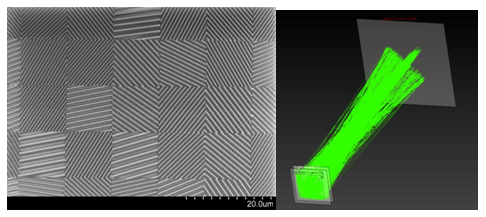 圖6. SEM觀察到的光柵單元陣列及其光線追跡成像